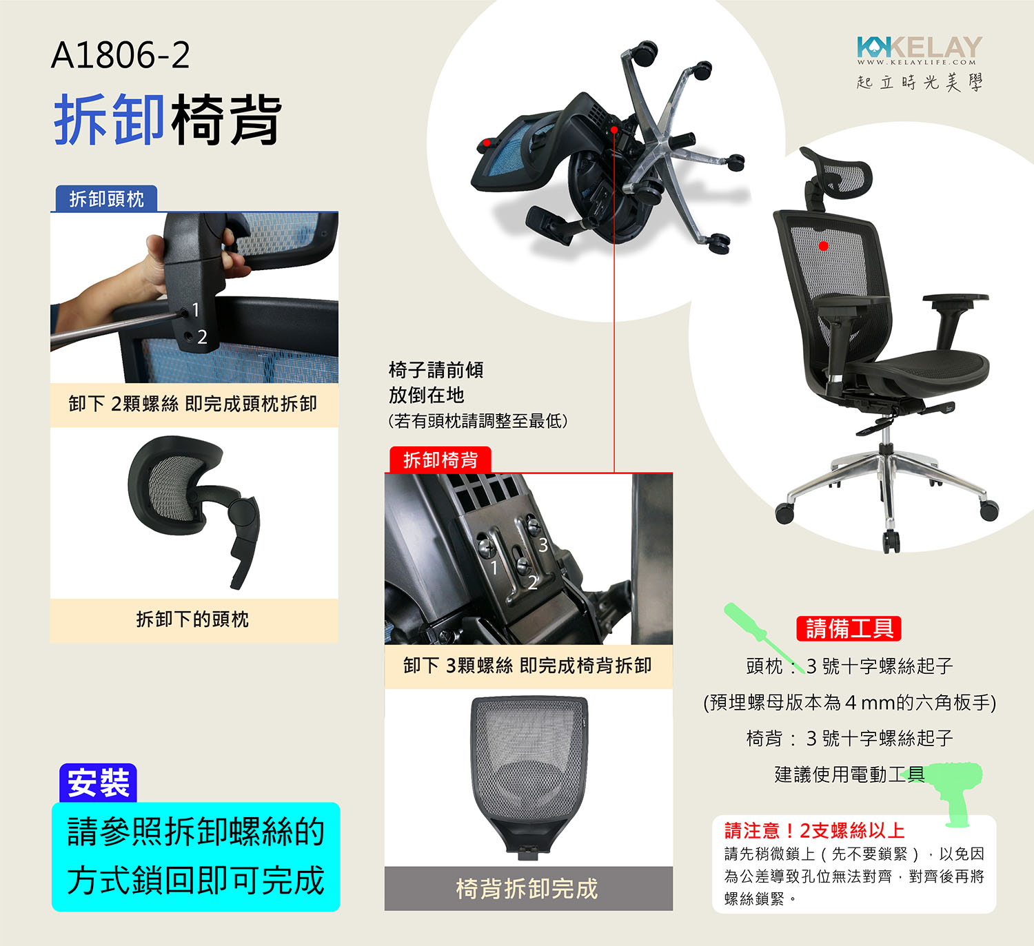 起立時光網椅配件區