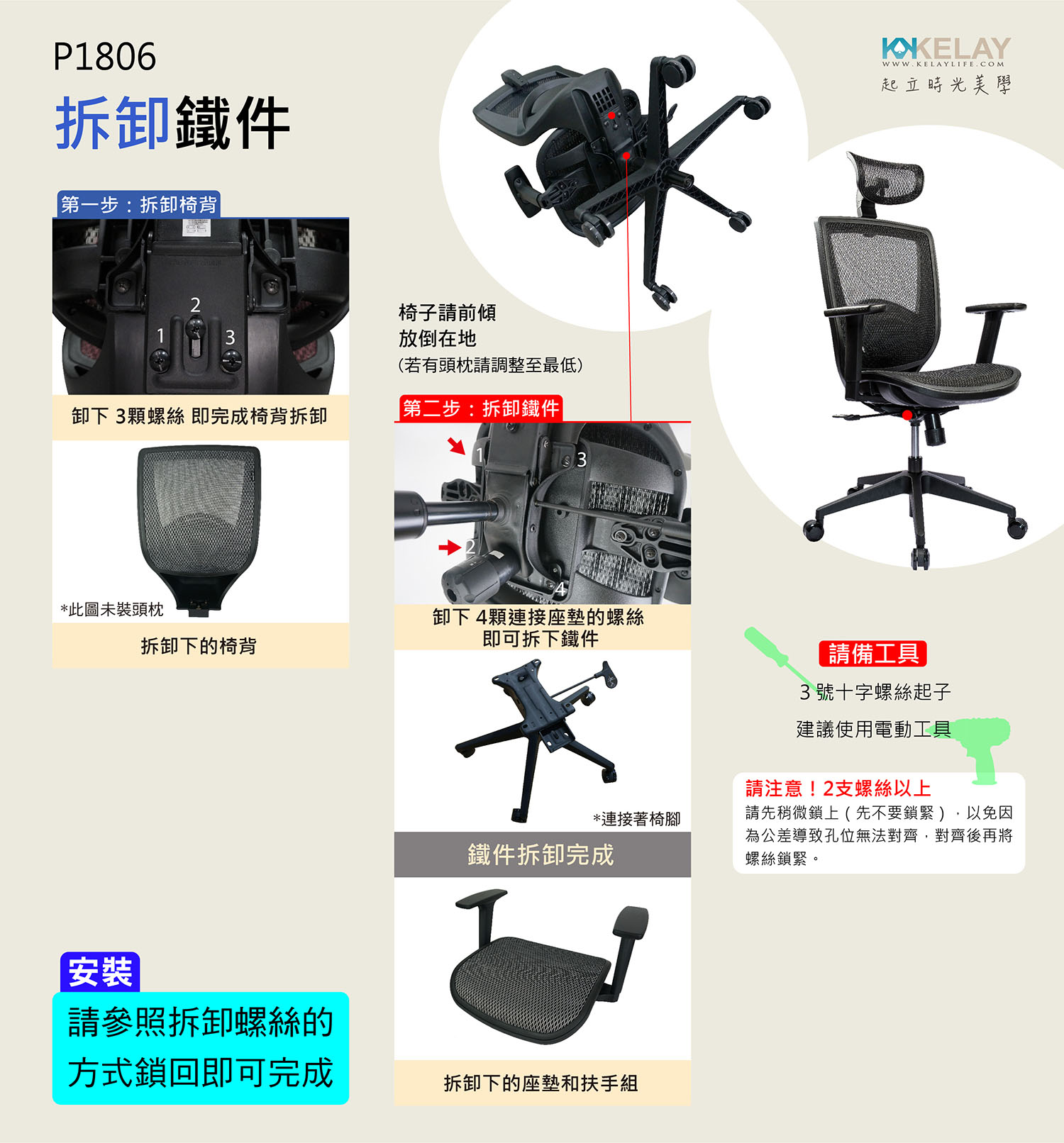起立時光網椅配件區