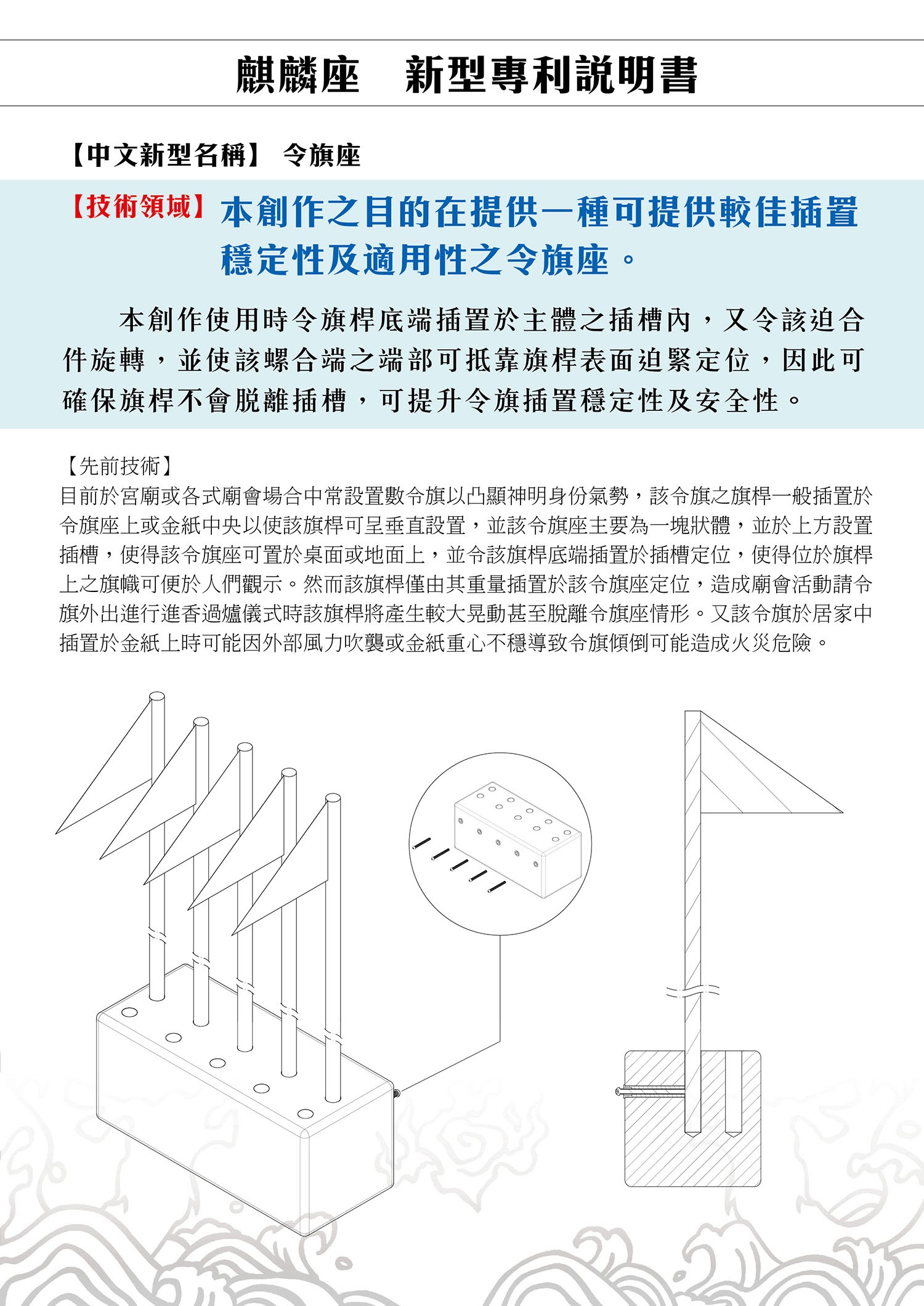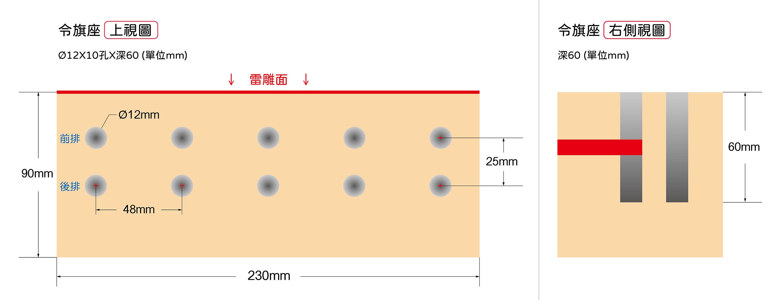 使用方式:每一個孔洞都有一根螺絲,可以視個人需求鬆緊調整固定令旗。