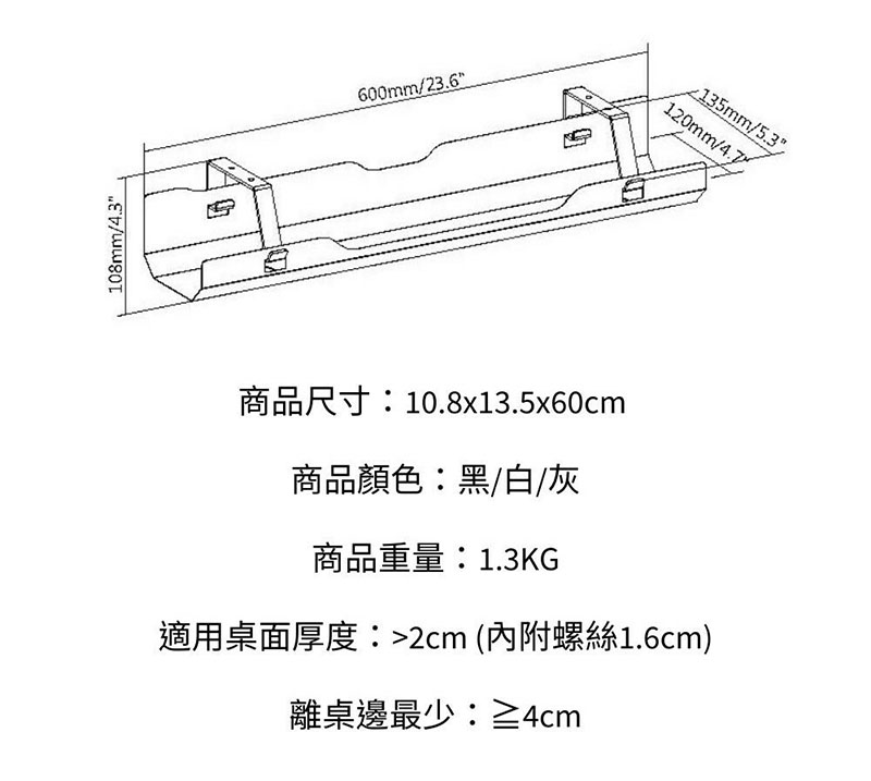 升降桌配件-開放式集線槽-黑/白/灰三色可選請備註顏色
