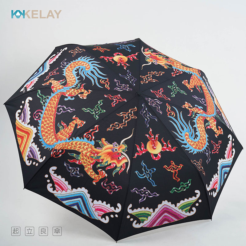 KL-AMF27D-BLK起立良傘-雙龍搶珠彩印-黑色