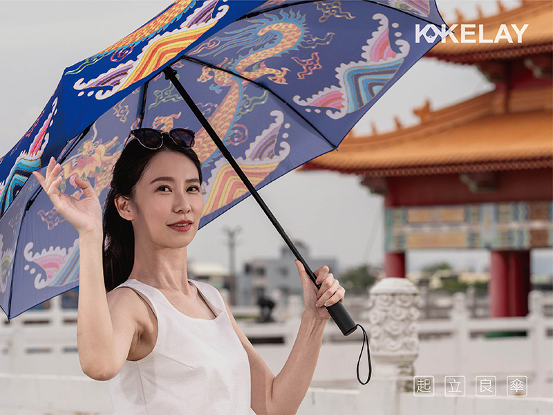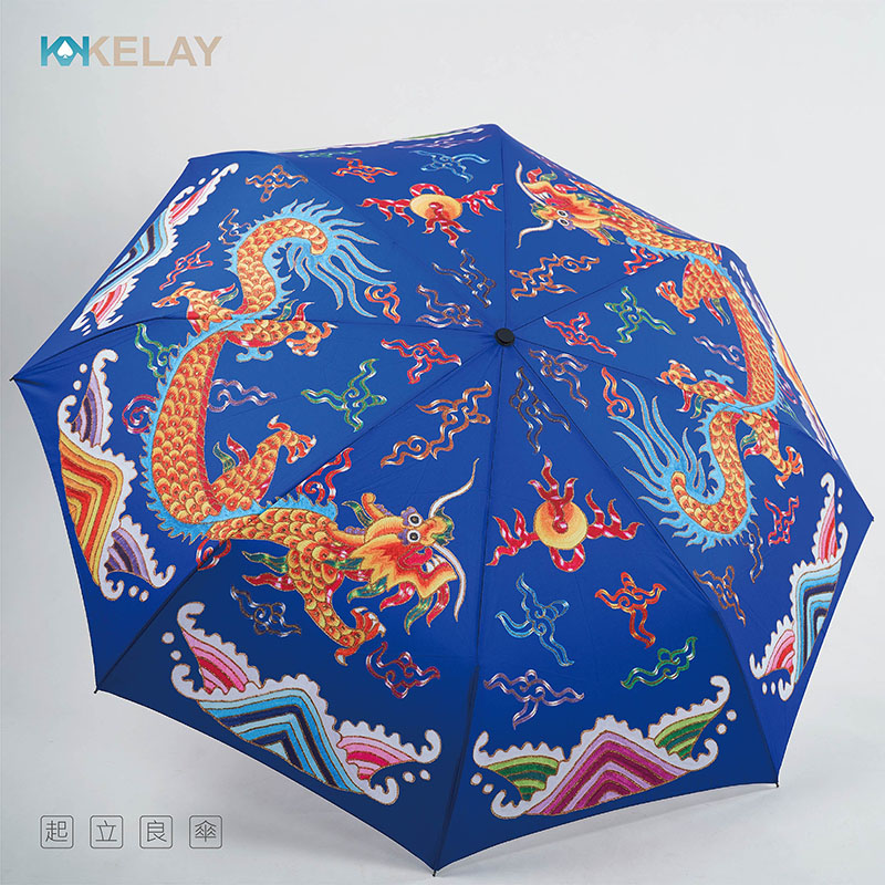 KL-AMF27D-BLU起立良傘-雙龍搶珠彩印-藍色