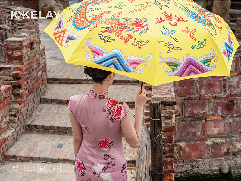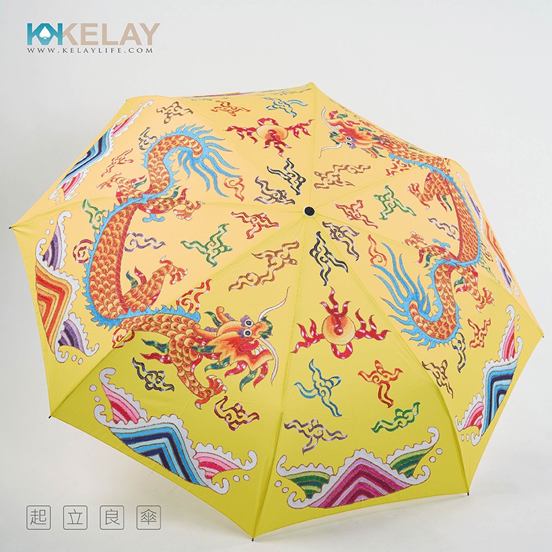 KL-AMF27D-YEL起立良傘-雙龍搶珠彩印-黃色