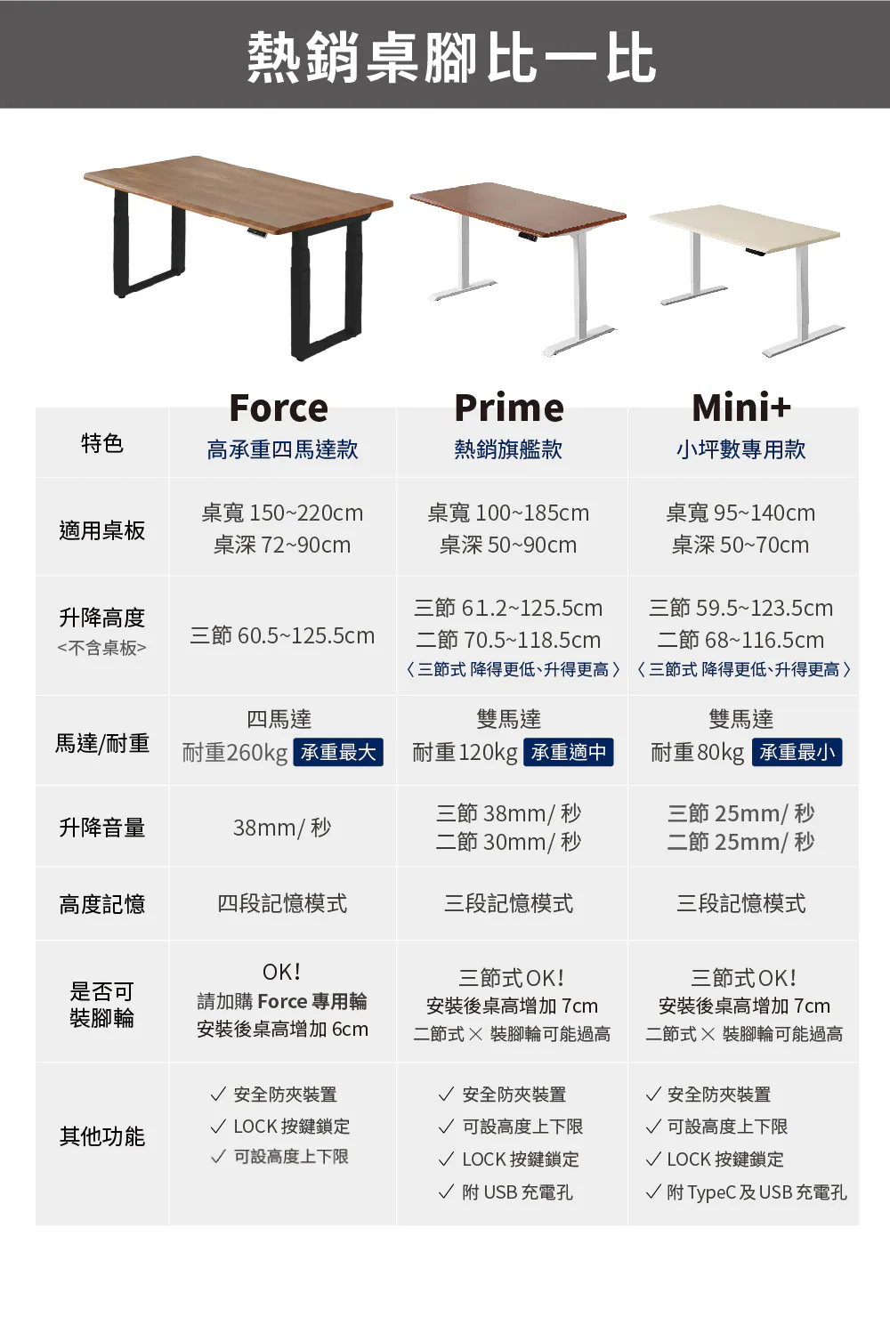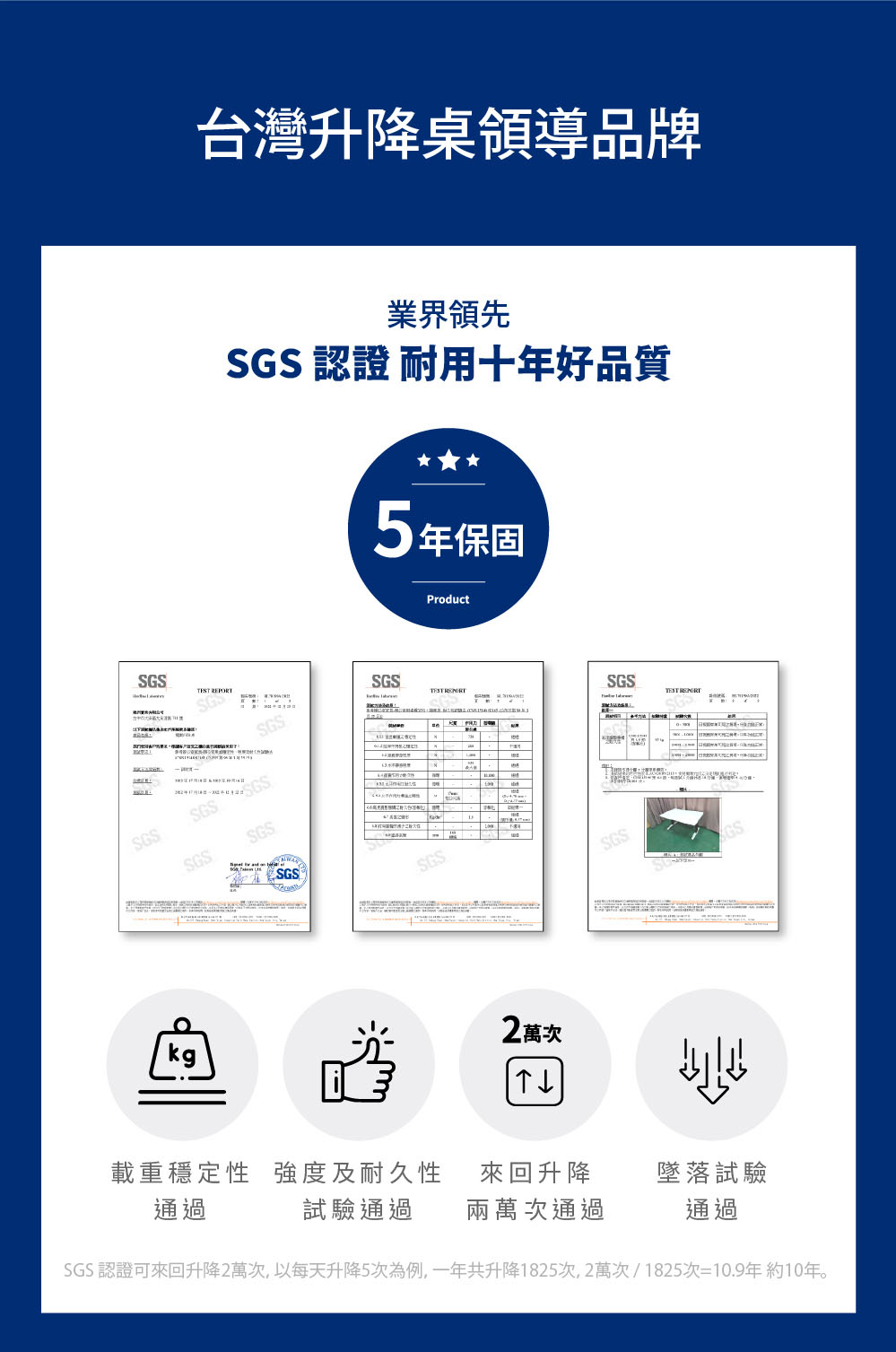 桌架/馬達及電控系統保固五年
