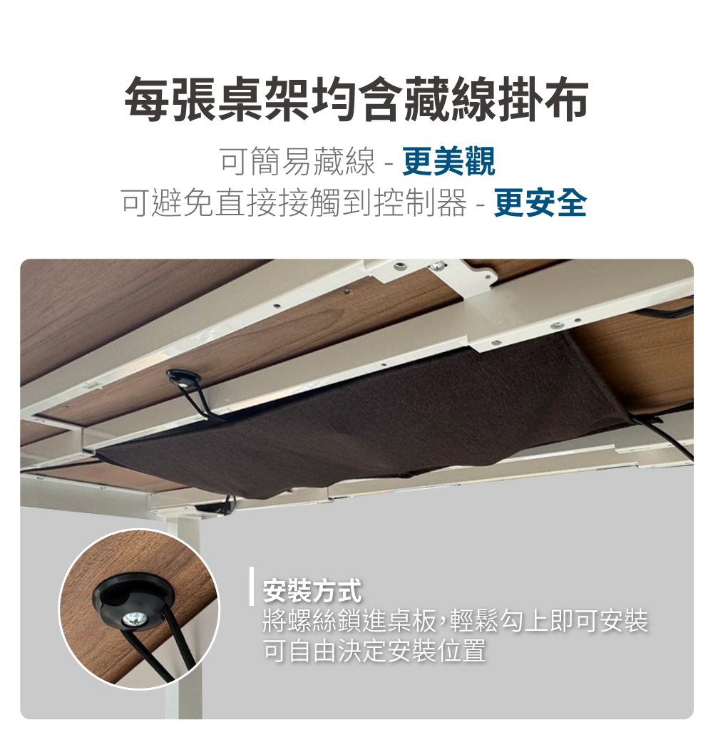 附藏線掛布,輕鬆收納電線,乾淨又美觀
