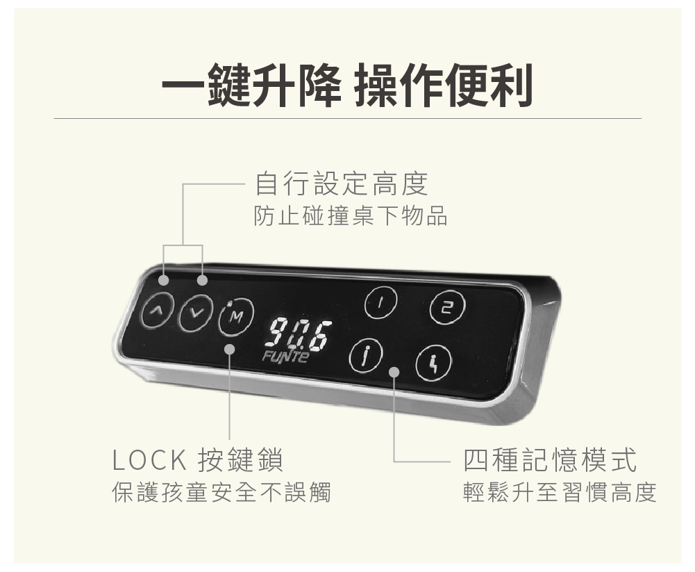 四段記憶模式,可記憶四種不同坐站高度