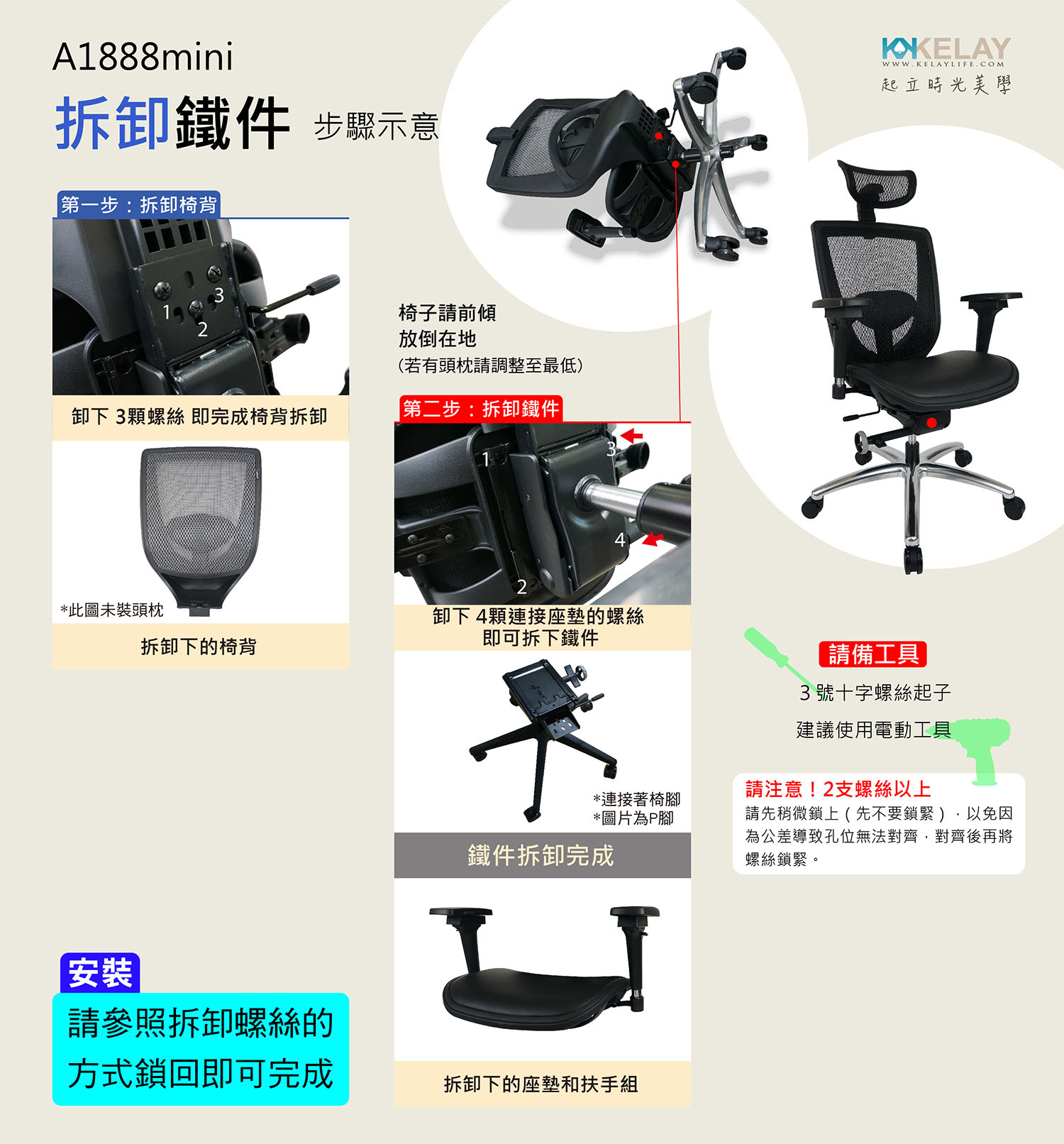 起立時光網椅配件區