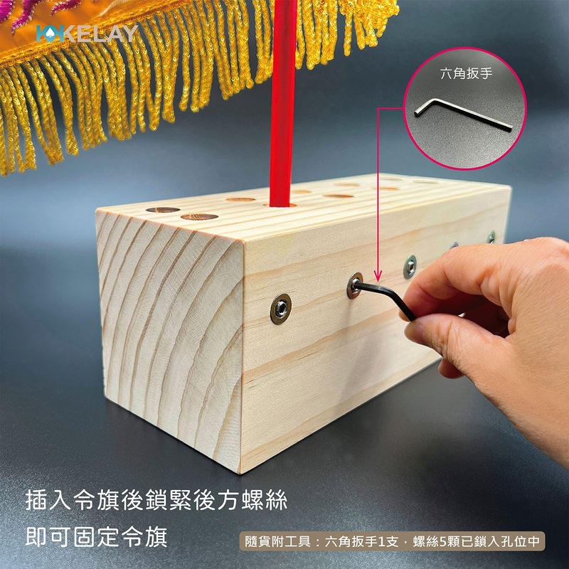 使用方式:每一個孔洞都有一根螺絲,可以視個人需求鬆緊調整固定令旗。