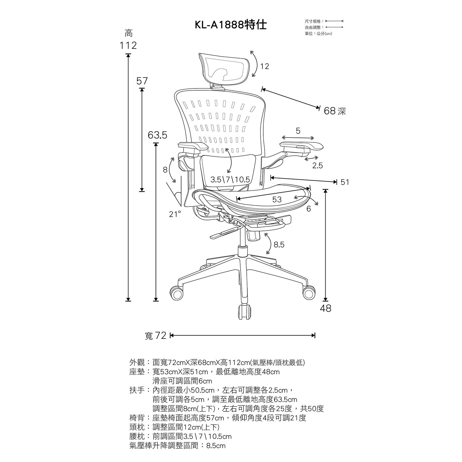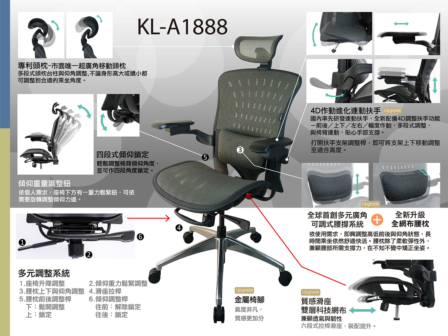全球首創多元廣角可調式腰撐系統—全新搭載專利腰撐,全網更透氣~